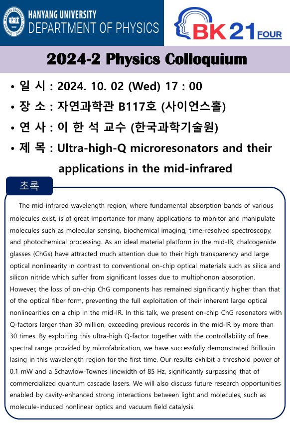 한양대학교 물리학과 BK-Four 양자물질 극한물성 교육연구팀