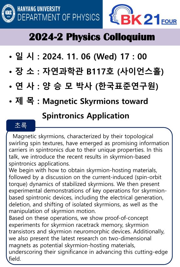 [2024-2 콜로키움] 2024년 11월 06일 17:00, 양승모 박사 (한국표준연구원)