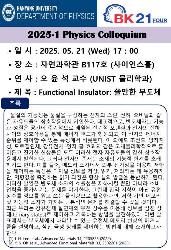 한양대학교 물리학과 BK-Four 양자물질 극한물성 교육연구팀