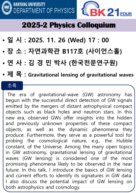 [2025-2 콜로키움] 2025년 11월 26일 17:00, 김경민 박사 (한국천문연구원)
