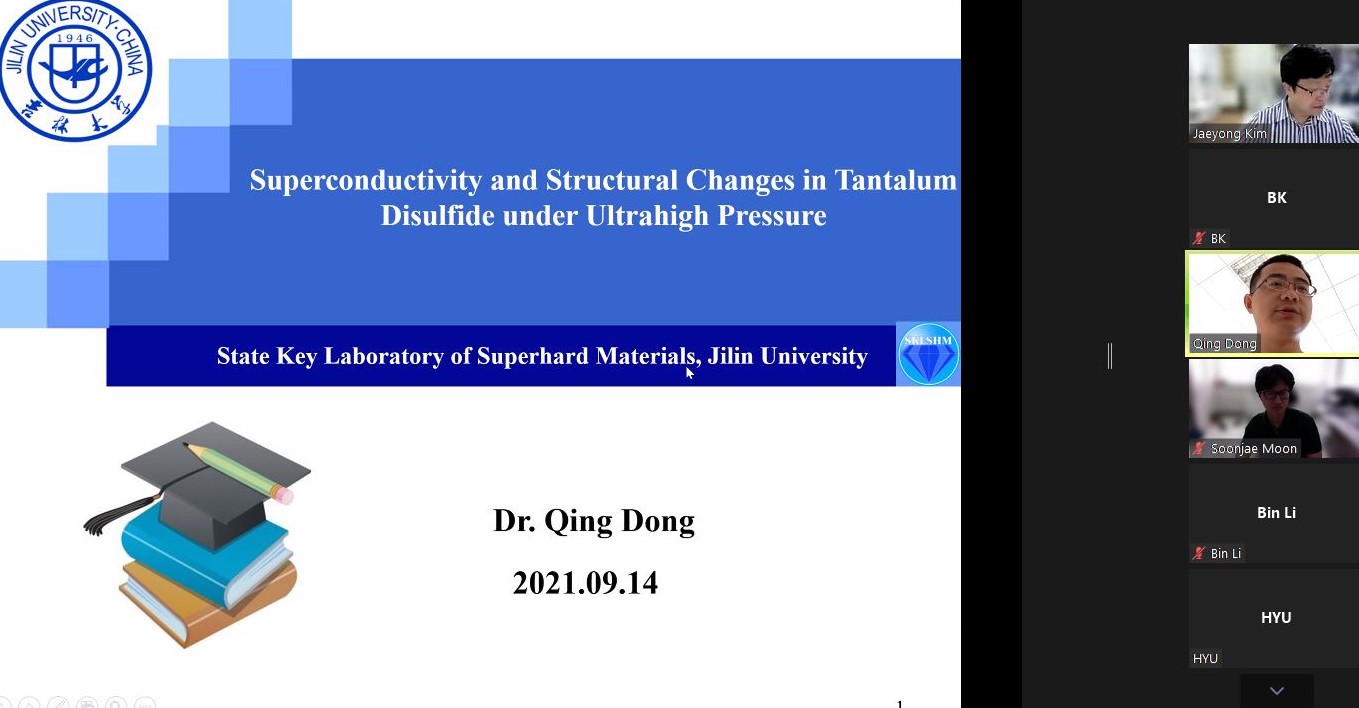 연 사 : Qing Dong 박사 (State Key Laboratory of Superhard Materials, Jilin University)