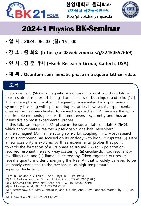 한양대학교 물리학과 BK-Four 양자물질 극한물성 교육연구팀