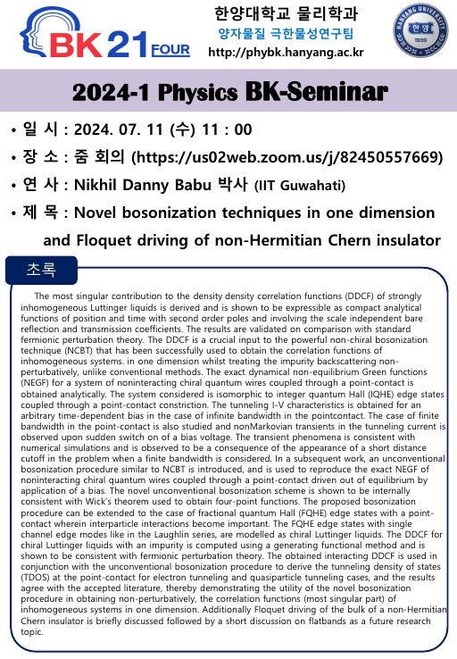 [2024-1 BK세미나시리즈] 2024년 07월 11일 11:00, Nikhil Danny Babu 박사 (IIT Guwahati)