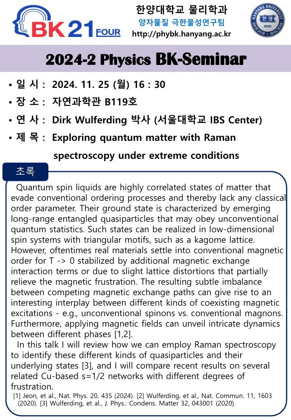 [2024-2 BK세미나시리즈] 2024년 11월 25일 16:30, Dirk Wulferding 박사 (IBS Center)