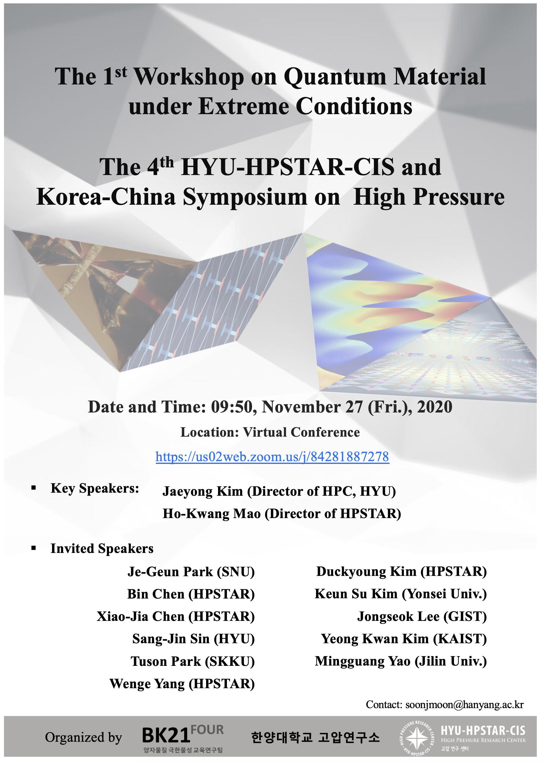 한양대 BK 양자물질 극한물성 교육연구팀에서 아래와 같이 워크샵을 개최합니다.