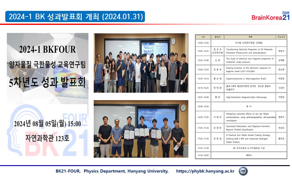한양대학교 물리학과 BK-Four 양자물질 극한물성 교육연구팀