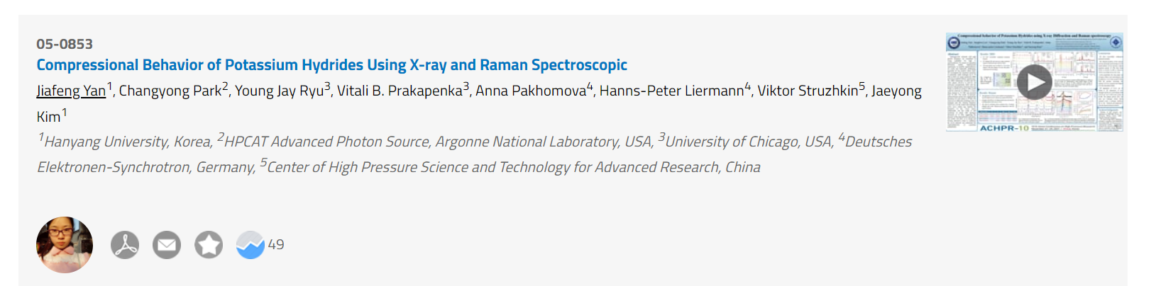 5. 연수주제 : Compressional Behavior of Potassium Hydrides Using X-ray and Raman Spectroscopic