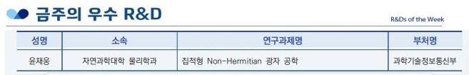 [금주의 우수R&D] 2025년 03월 5주차 윤재웅 교수